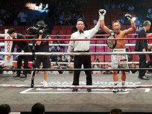 (写真下)渡士也選手が5ラウンドKO勝ちで日本スーパーバンタム級タイトル初防衛に成功しました。来年は世界戦を期待しています。